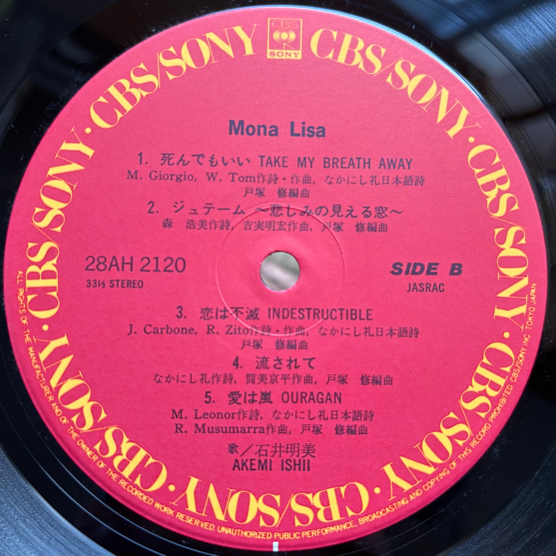 *Mona Lisa* (1983) showcases Akemi Ishii’s soulful vocals over groovy City Pop and urban boogie tracks. A refined early 80’s album that blends Japanese pop elegance with soul-infused energy, making it a sought-after record for collectors of City Pop and J-groove.