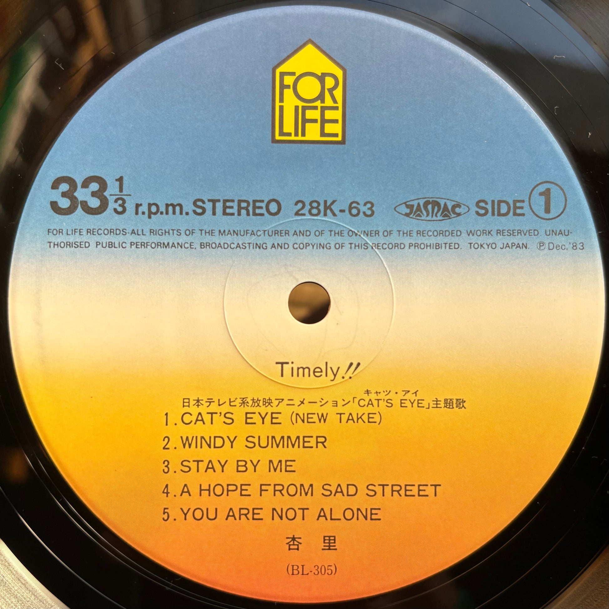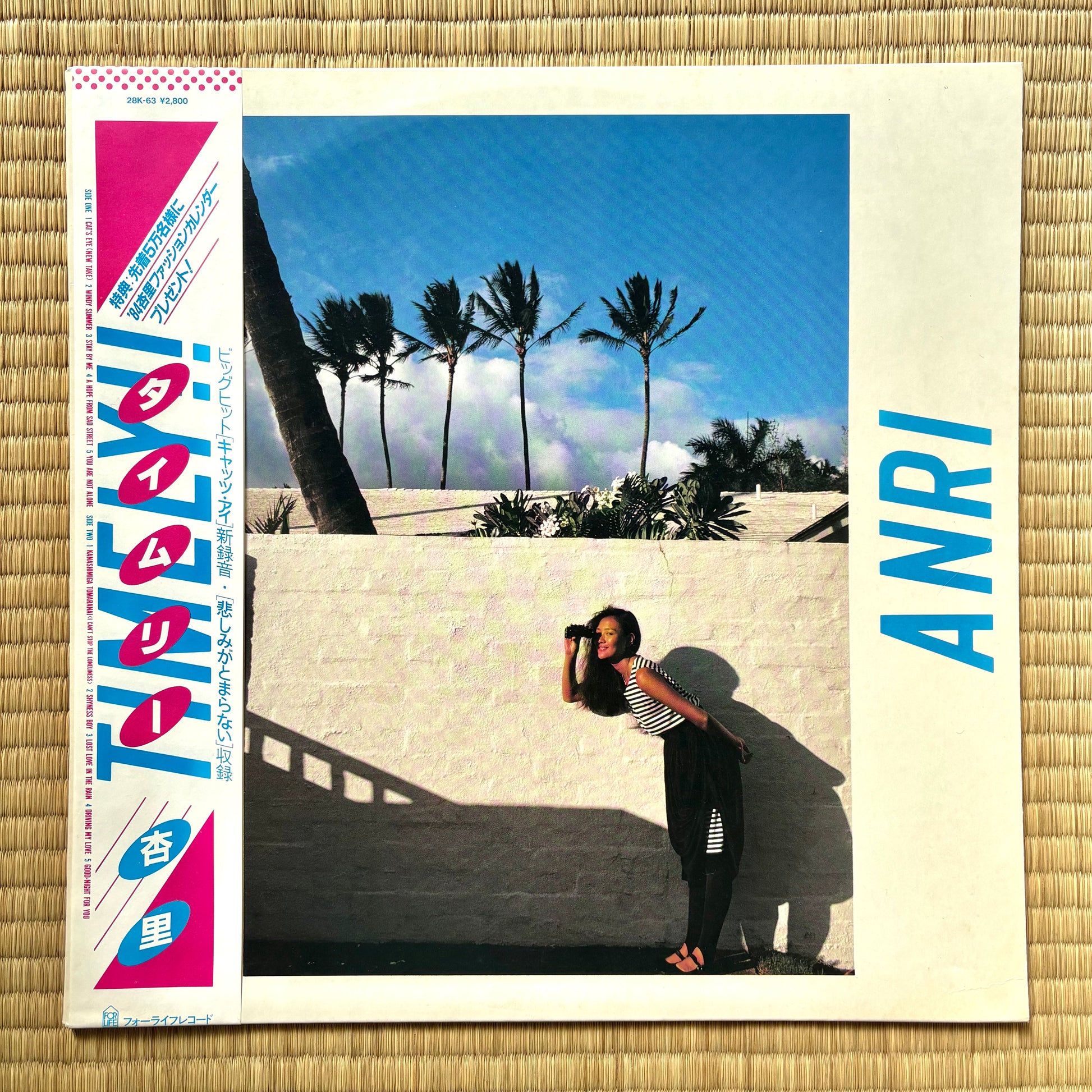 Anri “Timely!!” is a 1983 summer city pop / AOR classic for For Life Records, produced and arranged by Toshiki Kadomatsu with his signature resort-style sound. “Windy Summer” and “Stay By Me” deliver breezy light-mellow grooves, while “Cat’s Eye (New Take)” and “A Hope From Sad Street” bring danceable boogie and late-night slow-jam moods with crisp, sample-friendly drums and synths. Essential 80s Japanese city pop – and this copy even includes the original 1983 calendar insert.