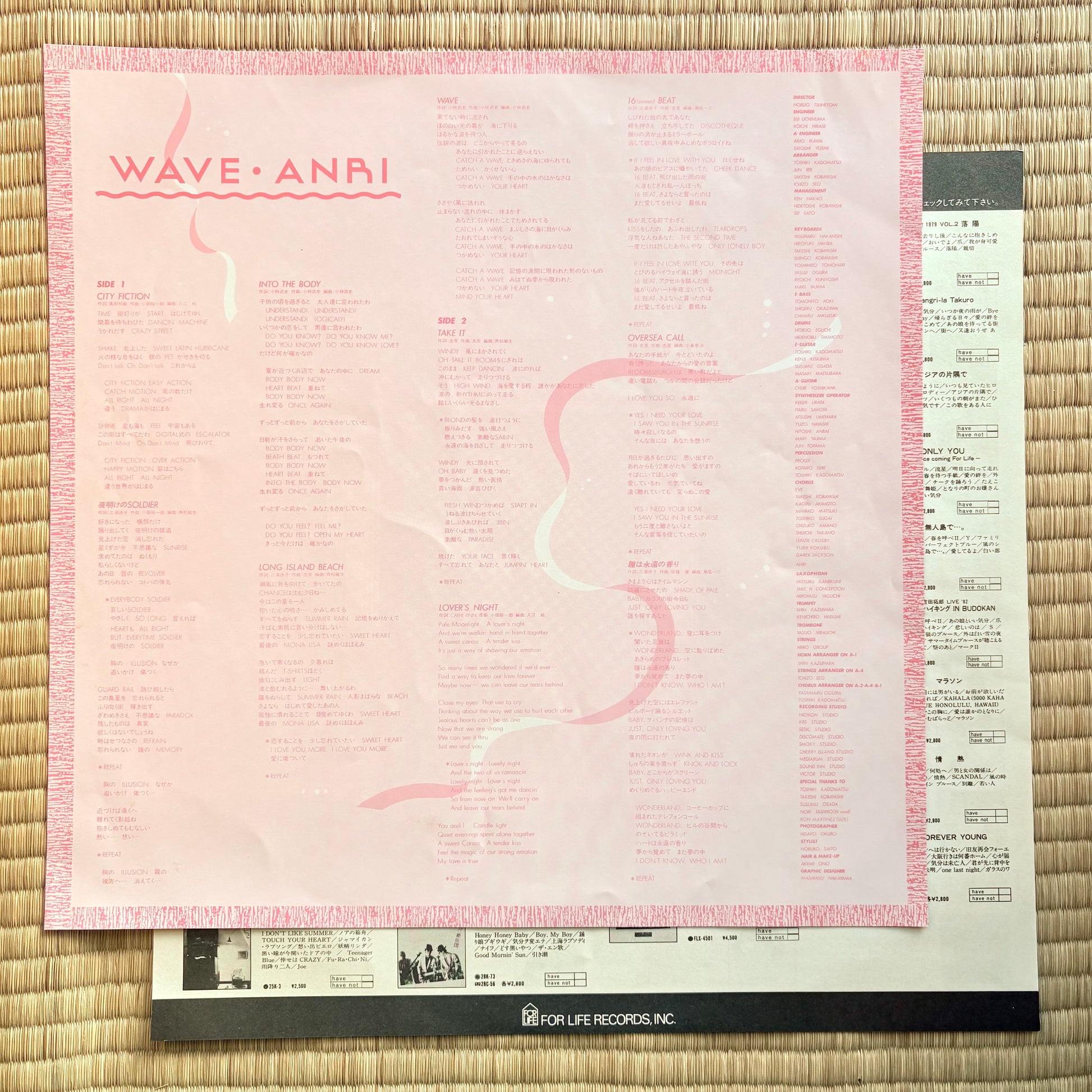 Anri “Wave” is Anri’s 1985 follow-up to Timely!!, with Toshiki Kadomatsu back in the arranger/producer seat and pushing her sound deeper into breezy West Coast–flavoured city pop and boogie. “City Fiction” and “Into The Body” open with crisp 16-beat drums and bright synth bass, “Long Island Beach” and the title track ride sunburnt AOR grooves, while “16 Beat” and “Oversea Call” bring proper dance-floor energy with tight, sample-friendly rhythms. Often overlooked next to Timely!!, but absolutely essential if you love Kadomatsu’s resort-style mid-80s production.