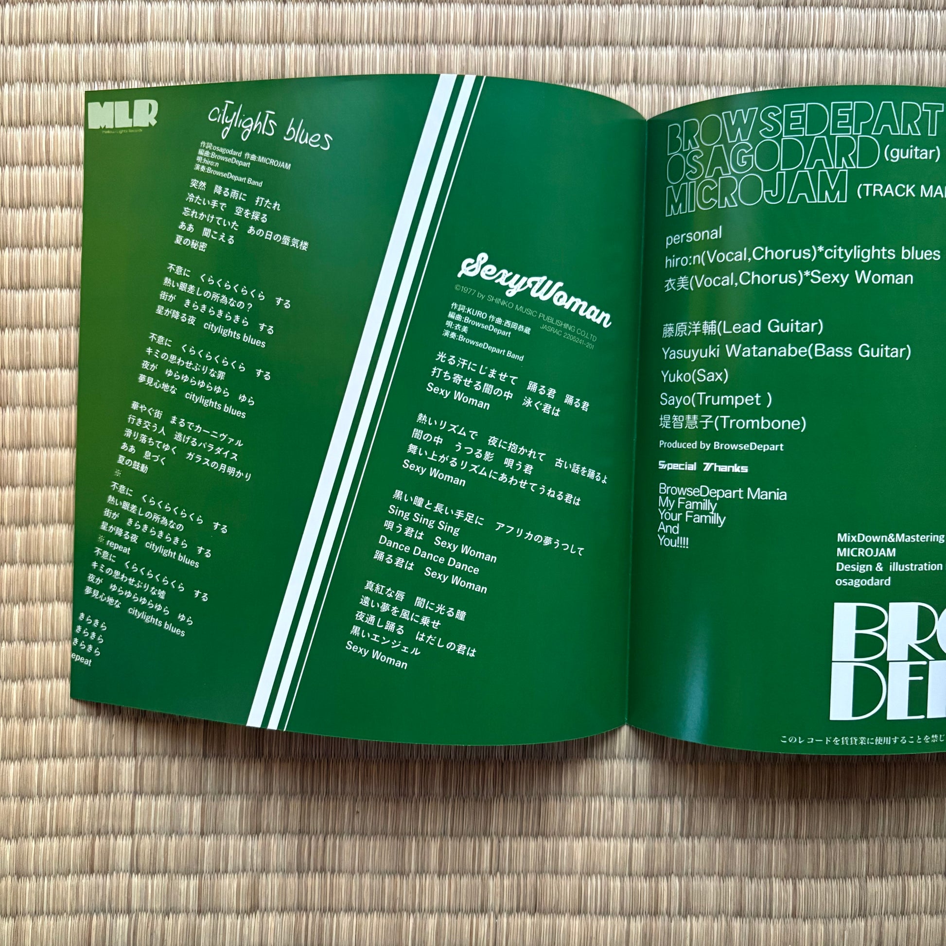 Following their hit debut single “Nightrider Part.2,” Browse Depart return with a true double-sider: the upper, catchy and fast-driving “citylights blues,” and a slow, mellow downbeat cover of Ruriko Ogami’s “Sexy Woman,” rebuilt for repeat plays. “citylights blues” features singer-songwriter hiro:n on vocals, delivering a cute yet powerful performance over a DJ-friendly track full of smart breaks. On the flip, ex-Zukunashi / EMILAND singer Emi brings a cool, soulful edge to “Sexy Woman,” keeping its dark city pop feel while pushing a slower, deeply danceable groove with a tight band and brass section behind her.