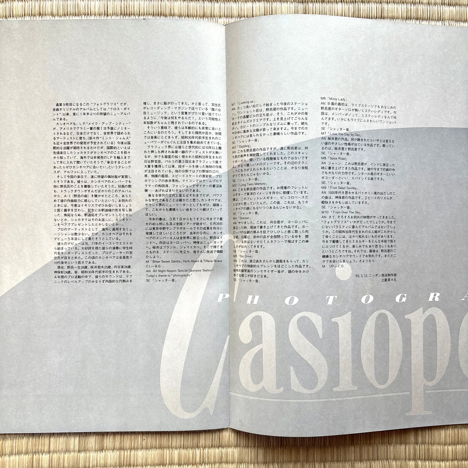 Released in 1983 on Alfa, Photographs is Casiopea’s seventh studio album, with the core quartet of Issei Noro, Minoru Mukaiya, Tetsuo Sakurai and Akira Jimbo in peak form. From the bright opening run of “Looking Up,” “Dazzling” and “Long Term Memory” through to the midtempo cruisers “Misty Lady” and “Love You Day By Day,” the record balances singable themes with intricate rhythm work and glossy early-80s synth textures. Clean drum intros, tight bass vamps and short, hooky keyboard phrases pop up across the album, making it a gift for DJs and beatmakers looking for sample-friendly sections that still carry that unmistakable Casiopea sparkle.