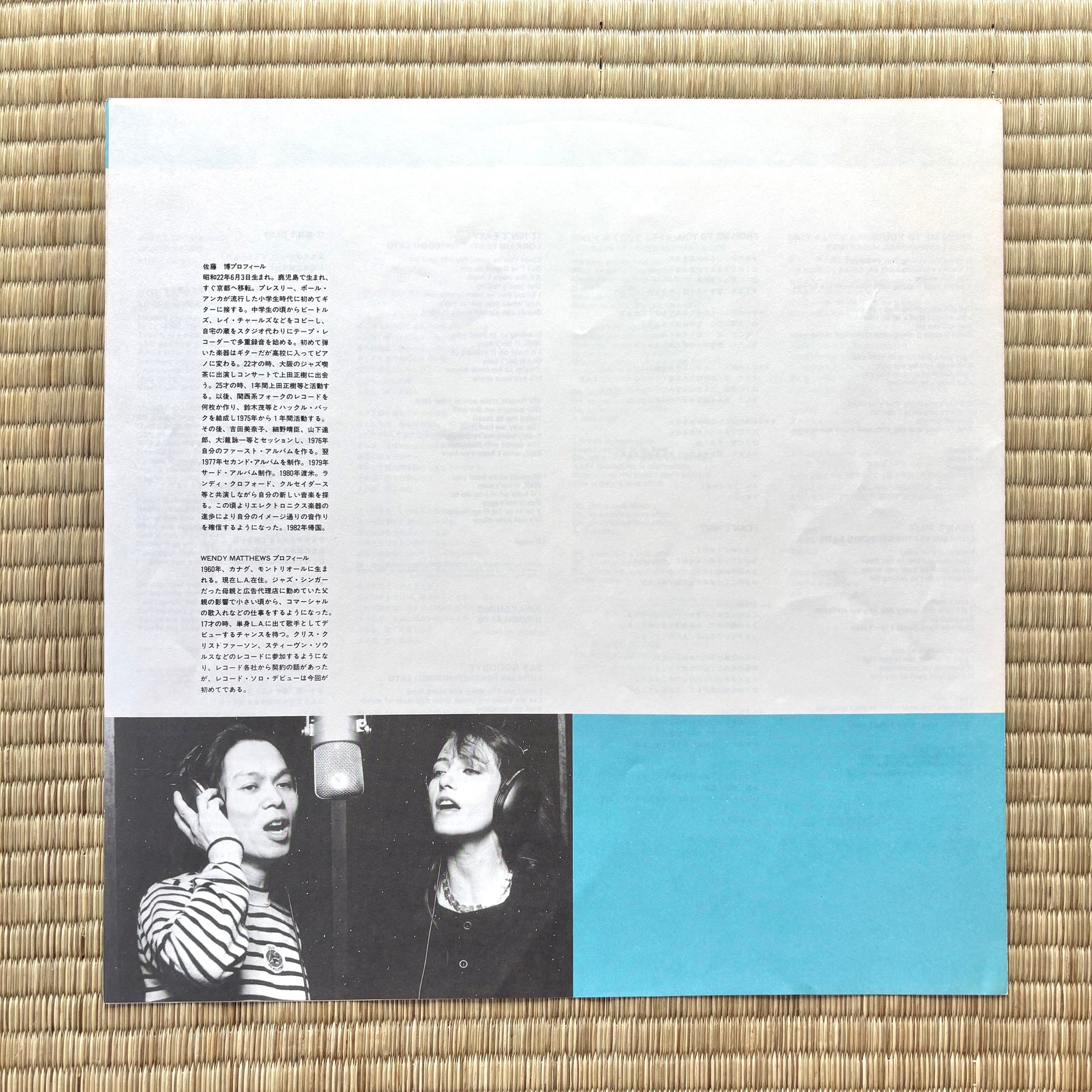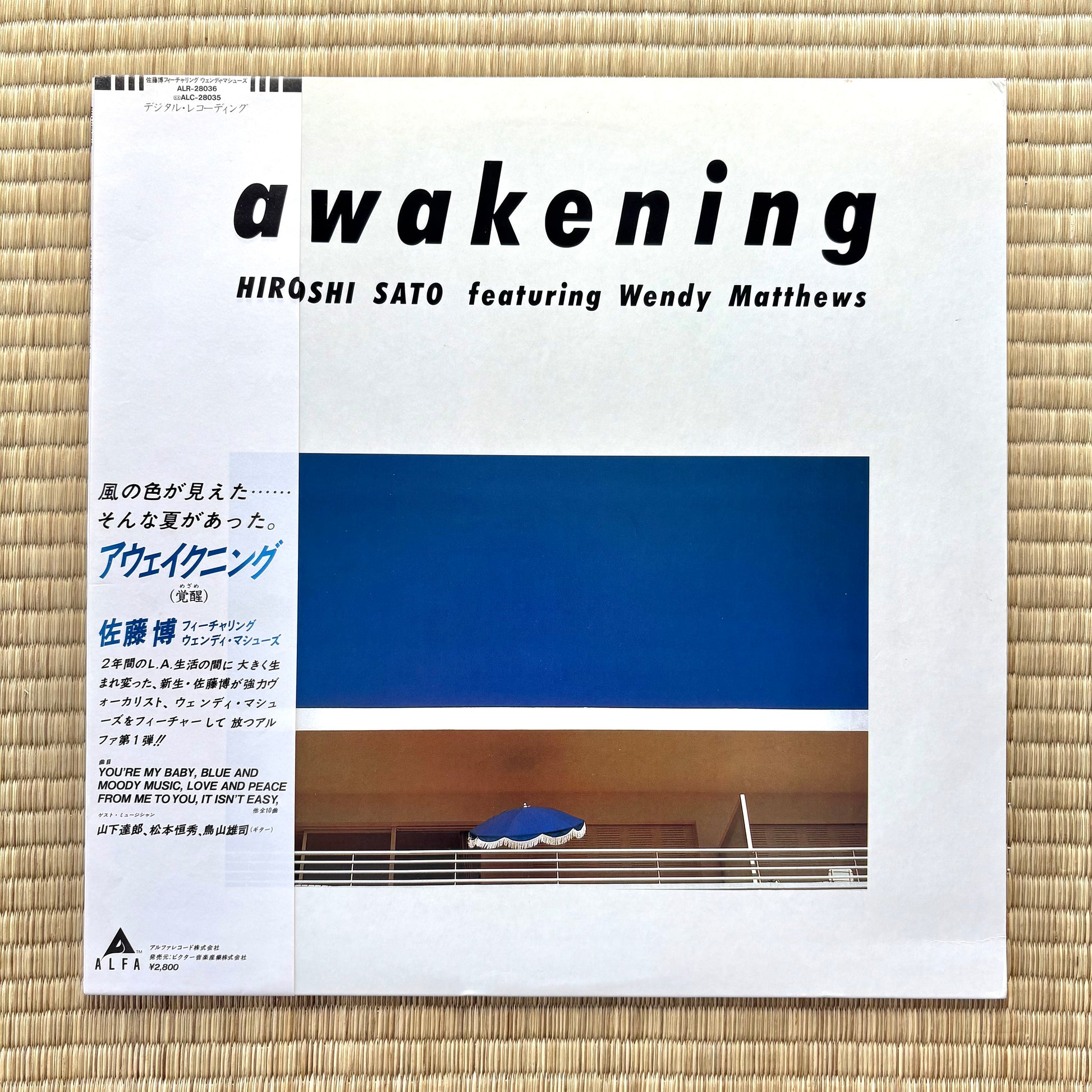 Released in 1982 on Alfa (ALR-28036), Awakening is Hiroshi Sato’s masterpiece: self-programmed drums and synths, glossy keys, and guest guitars from Tatsuro Yamashita (B5), Yuji Toriyama (B1), and Tsunehide Matsuki (A3/B2). Canadian-Australian singer Wendy Matthews floats across five cuts (“You’re My Baby,” “Only A Love Affair,” “I Can’t Wait,” “It Isn’t Easy,” “Say Goodbye”), giving the record its unmistakable midnight sheen. Mastered by Toru Kotetsu with photography by Steve Hiett, it’s front-to-back perfection that selectors love for its tidy structures and mid-tempo flow—especially “Blue And Moody Music” and closer “Say Goodbye.”
