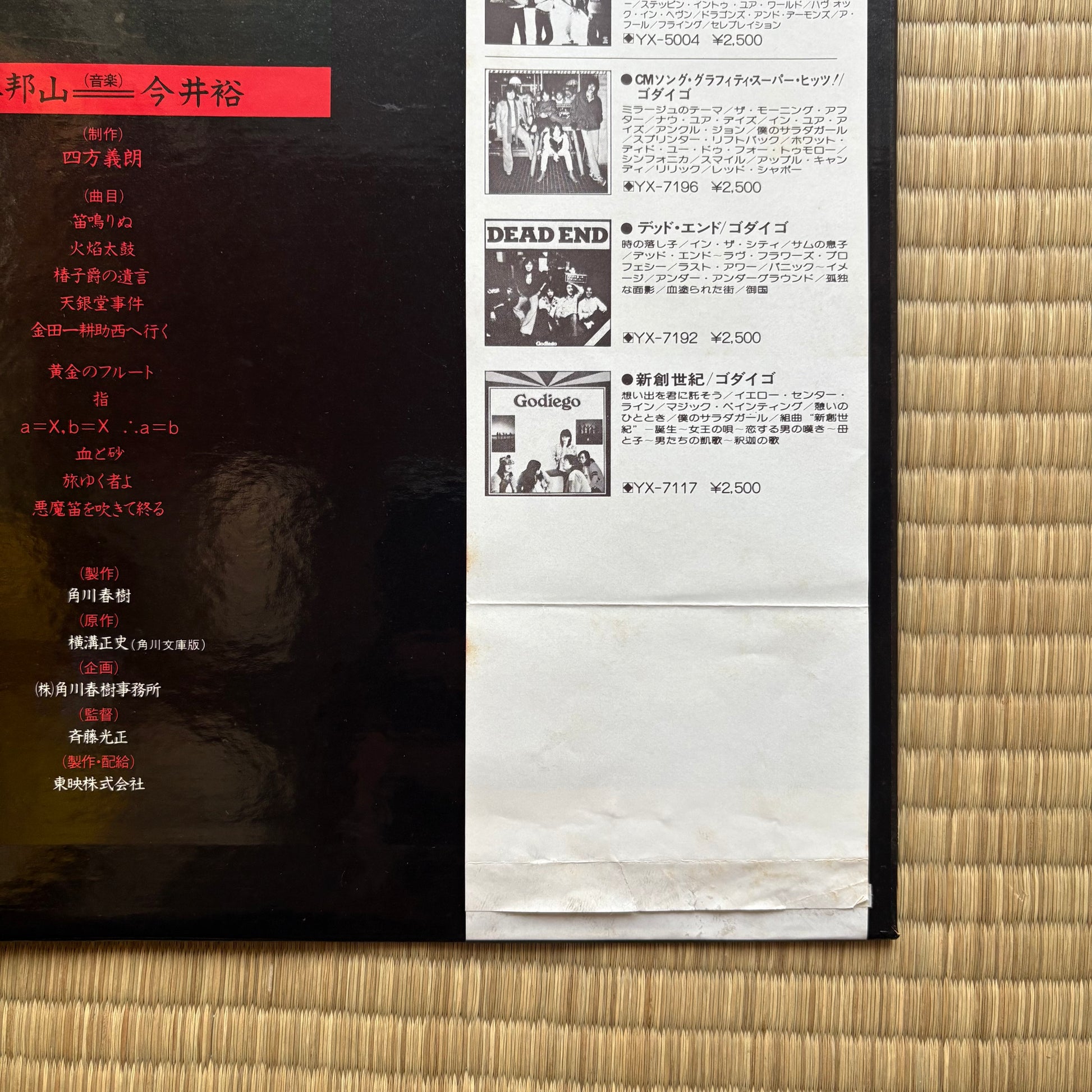 Released in 1978 on Nippon Columbia, “Akuma ga Kitarite Fue wo Fuku” is the original soundtrack to the Kosuke Kindaichi mystery film of the same name, composed by shakuhachi master Hozan Yamamoto and keyboardist/arranger Yutaka Imai. Traditional Japanese flute themes are set against electric jazz-funk and disco grooves: funky rhythm section, wah guitar and Rhodes, eerie strings and synths, with Yamamoto’s shakuhachi cutting through the mix. From the tense opening “笛前りぬ” and heavy jazz-funk of “火焔太鼓,” “天銀堂事件” to the suspenseful “黄金のフルート,” odd-meter fusion pieces like “a→x, b→x; a=b” and dramatic closer “悪魔が来りて笛を吹いて終る,” it’s a cult Japanese soundtrack that bridges spiritual Japanese folk elements and hard, cinematic jazz-funk – highly recommended for collectors of Japanese OSTs, jazz-funk and deep leftfield grooves.