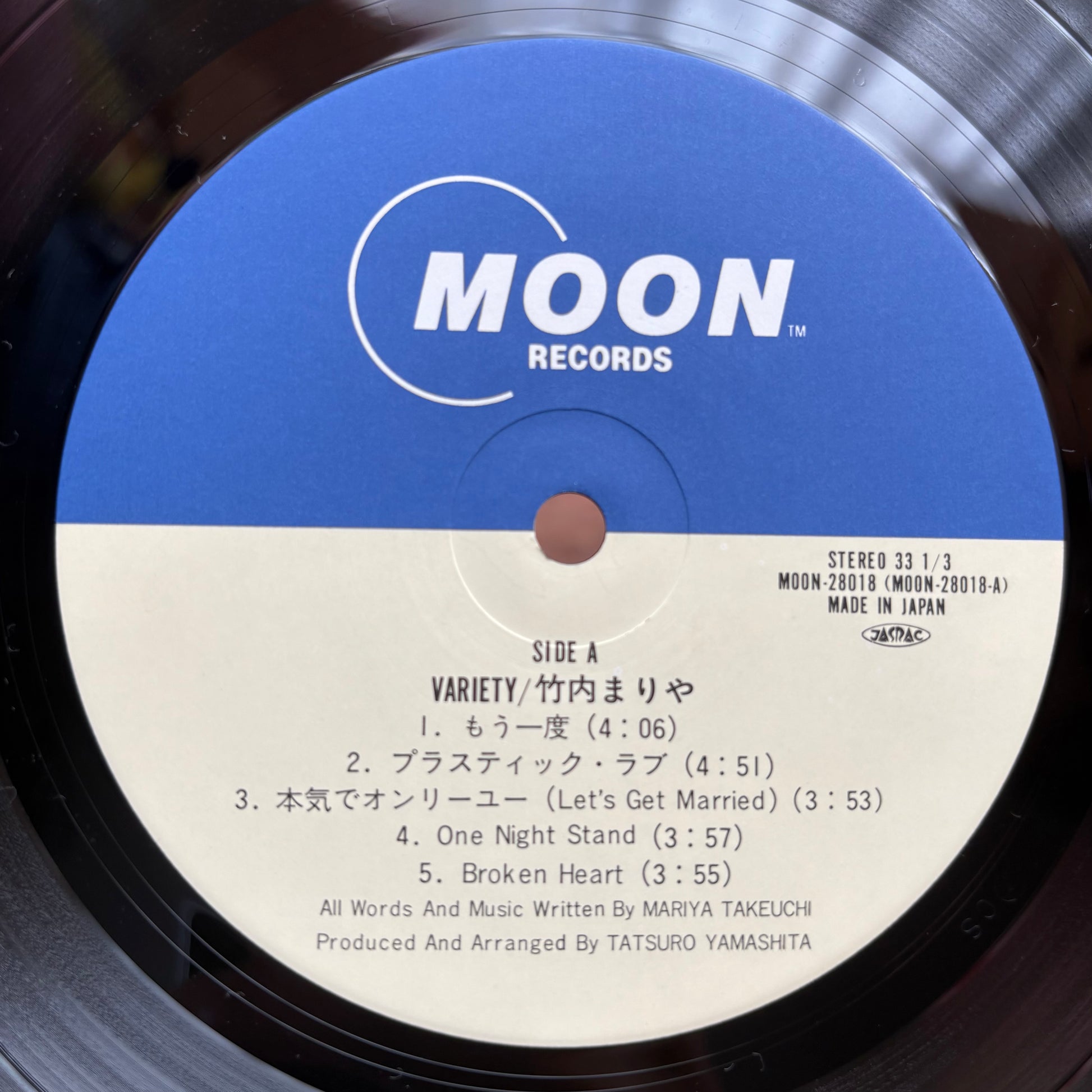 Released April 25, 1984 on Moon Records (LP MOON-28018), Variety marks Mariya Takeuchi’s full return: every song written by her, with production and arrangements by Tatsuro Yamashita. Cut between July ’83 and January ’84, the record blends West-Coast polish and Tokyo sophistication—radio-ready hooks over crisp Jun Aoyama drums, Koki Ito bass, and glossy keys. “Plastic Love” would later become a global touchpoint, but the set is front-to-back strong: “Mou Ichido,” “Broken Heart,” “Night at the Amphitheater,” and “Mizu to Anata to Taiyō to” all carry clean count-ins and steady mid-tempo grids DJs love. The album debuted at No.1 on Oricon and stands today as her defining statement.