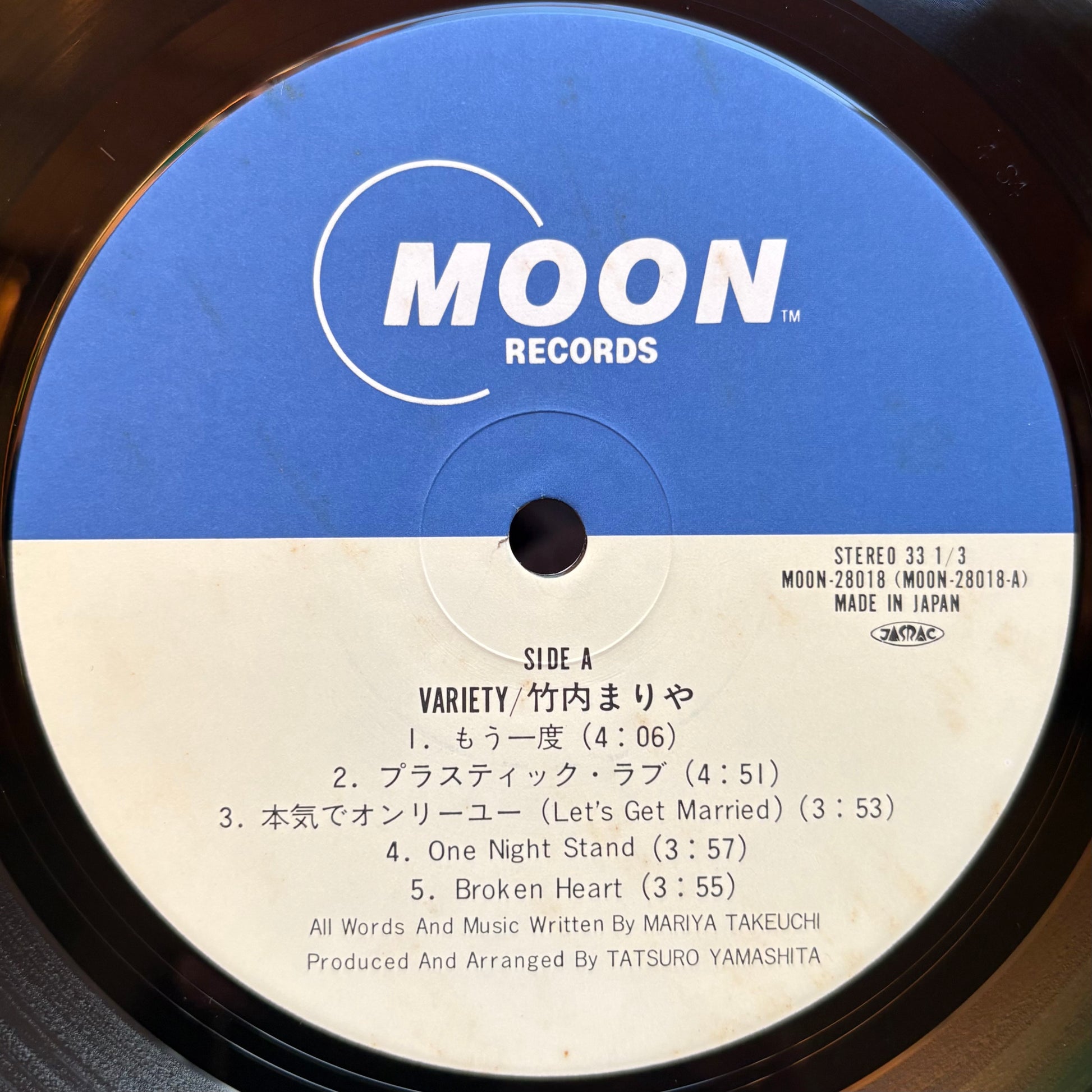 Released April 25, 1984 on Moon Records (LP MOON-28018), Variety marks Mariya Takeuchi’s full return: every song written by her, with production and arrangements by Tatsuro Yamashita. Cut between July ’83 and January ’84, the record blends West-Coast polish and Tokyo sophistication—radio-ready hooks over crisp Jun Aoyama drums, Koki Ito bass, and glossy keys. “Plastic Love” would later become a global touchpoint, but the set is front-to-back strong: “Mou Ichido,” “Broken Heart,” “Night at the Amphitheater,” and “Mizu to Anata to Taiyō to” all carry clean count-ins and steady mid-tempo grids DJs love. The album debuted at No.1 on Oricon and stands today as her defining statement.