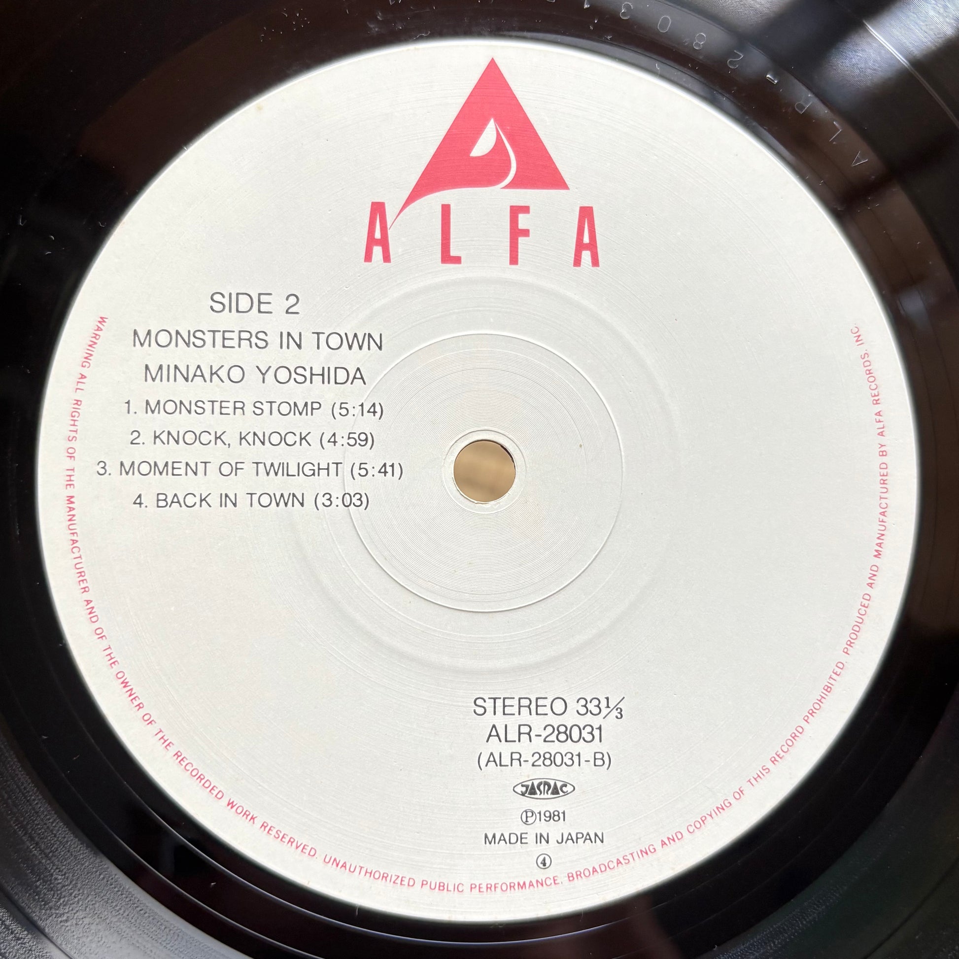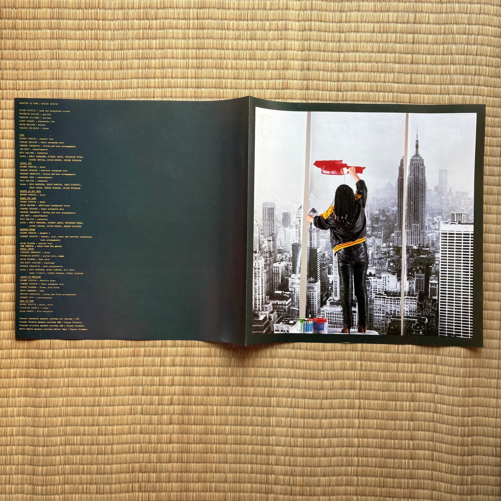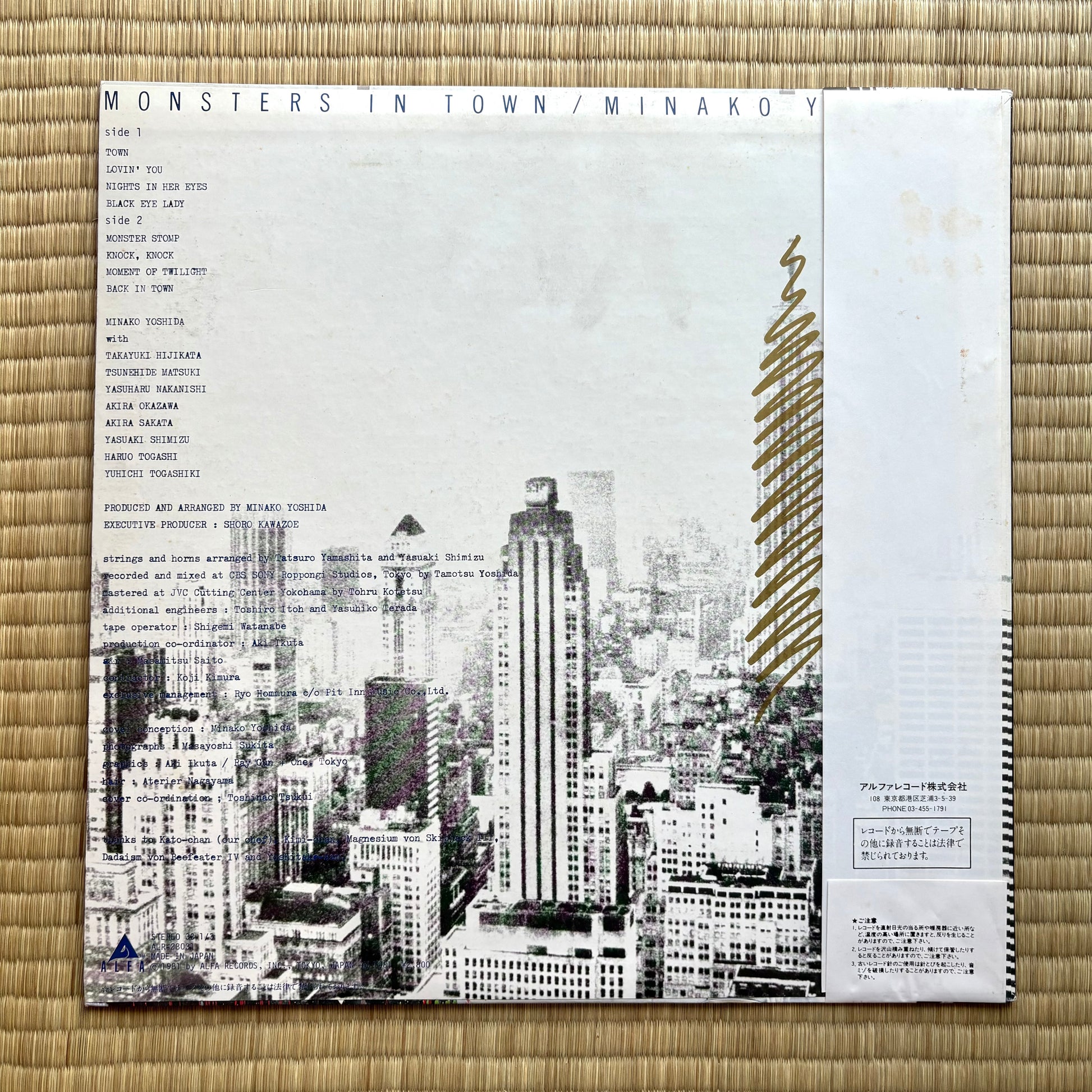 Released November 21, 1981 on Alfa (ALR-28031), Monsters In Town is Minako Yoshida’s self-produced city-funk statement: recorded and mixed at CBS/Sony Roppongi, horn/string charts by Tatsuro Yamashita and Yasuaki Shimizu, and a killer band with Akira Okazawa (bass) and Yuichi Togashiki (drums). The set pivots from the swaggering opener “TOWN” to boogie-tight “BLACK EYE LADY” (used in a Maxell cassette TV ad) and the brassy stomp of “MONSTER STOMP,” then slides into nocturnal shades on “Moment of Twilight” and “Back in Town.” For DJs/selectors: punchy horn stabs, multiple clean count-ins, and steady mid-tempo grids make this a reliable floor-lift across eras.