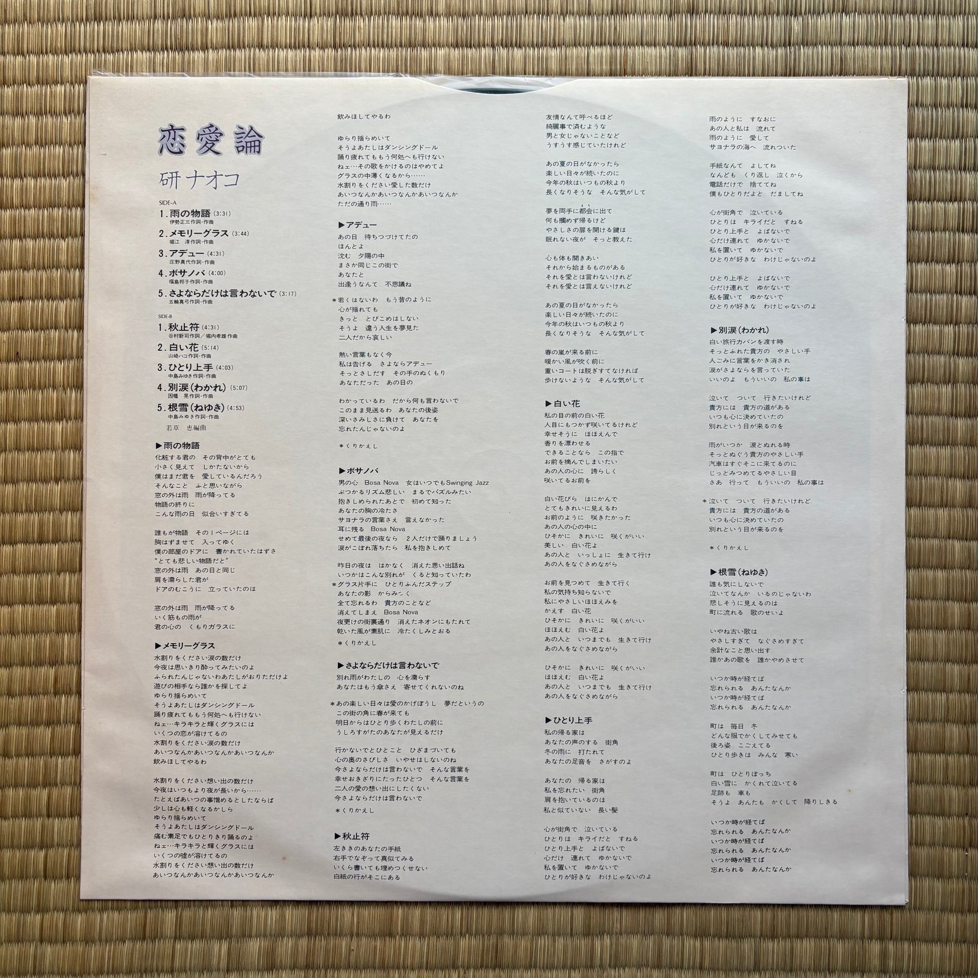 A song-first, late-’81 set—Naoko Ken’s warm alto brings New-Music classics a gentle, grown-up glow.