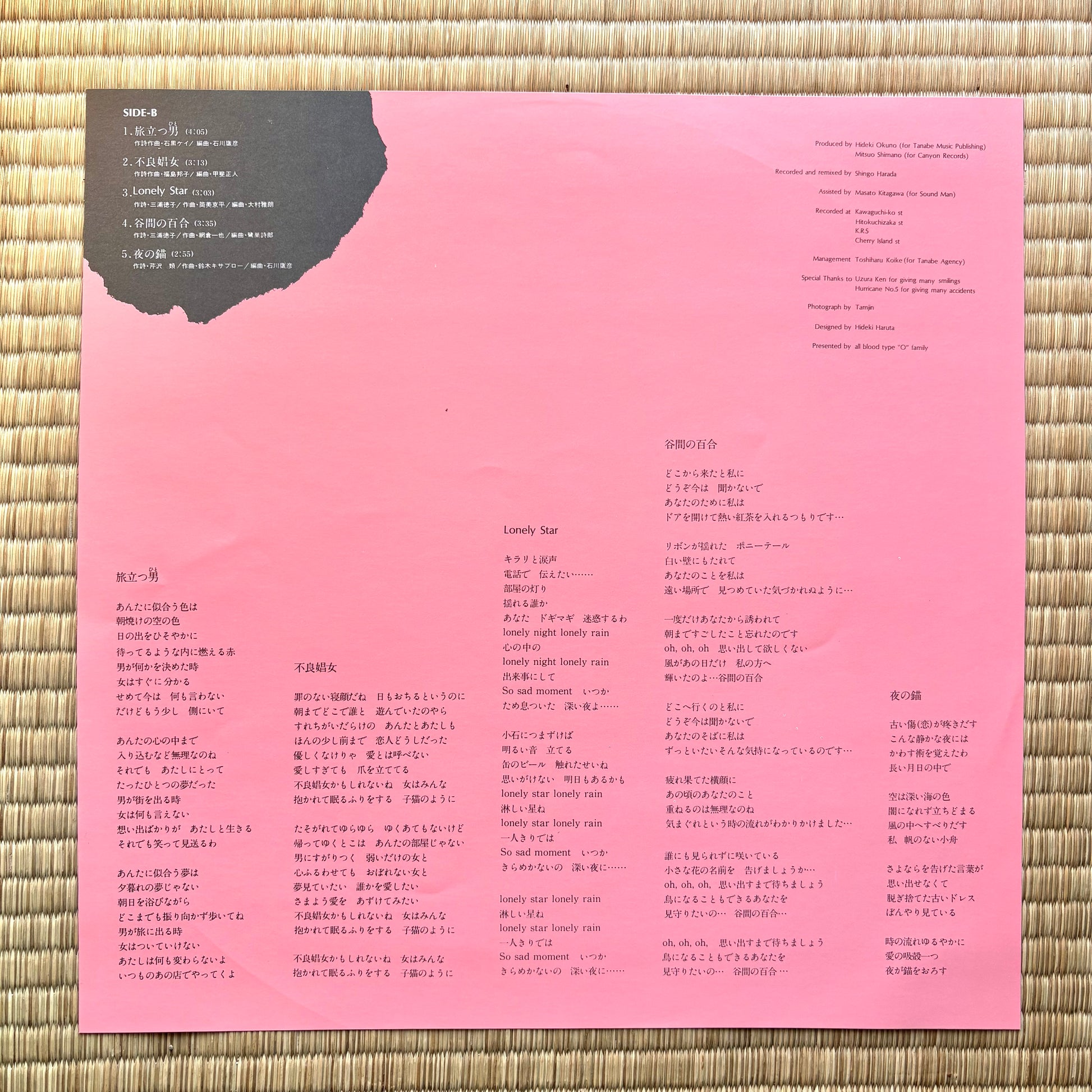 Naoko Ken’s early-80s Canyon album, featuring songs written by legendary pop composer Kyohei Tsutsumi, sits right on the line between city pop, AOR and mature new music, wrapping her husky voice in warm Rhodes, gentle horns and understated synths. “Shall We Dance” glides along a mellow 16-beat groove perfect for late-night plays, while “Lonely Star” and the closing ballads lean into slow, smoky moods with plenty of space in the mix for those soft drum and keyboard textures. It’s one of her finest front-to-back sets, capturing that bittersweet, grown-up side of Japanese pop that collectors chase.