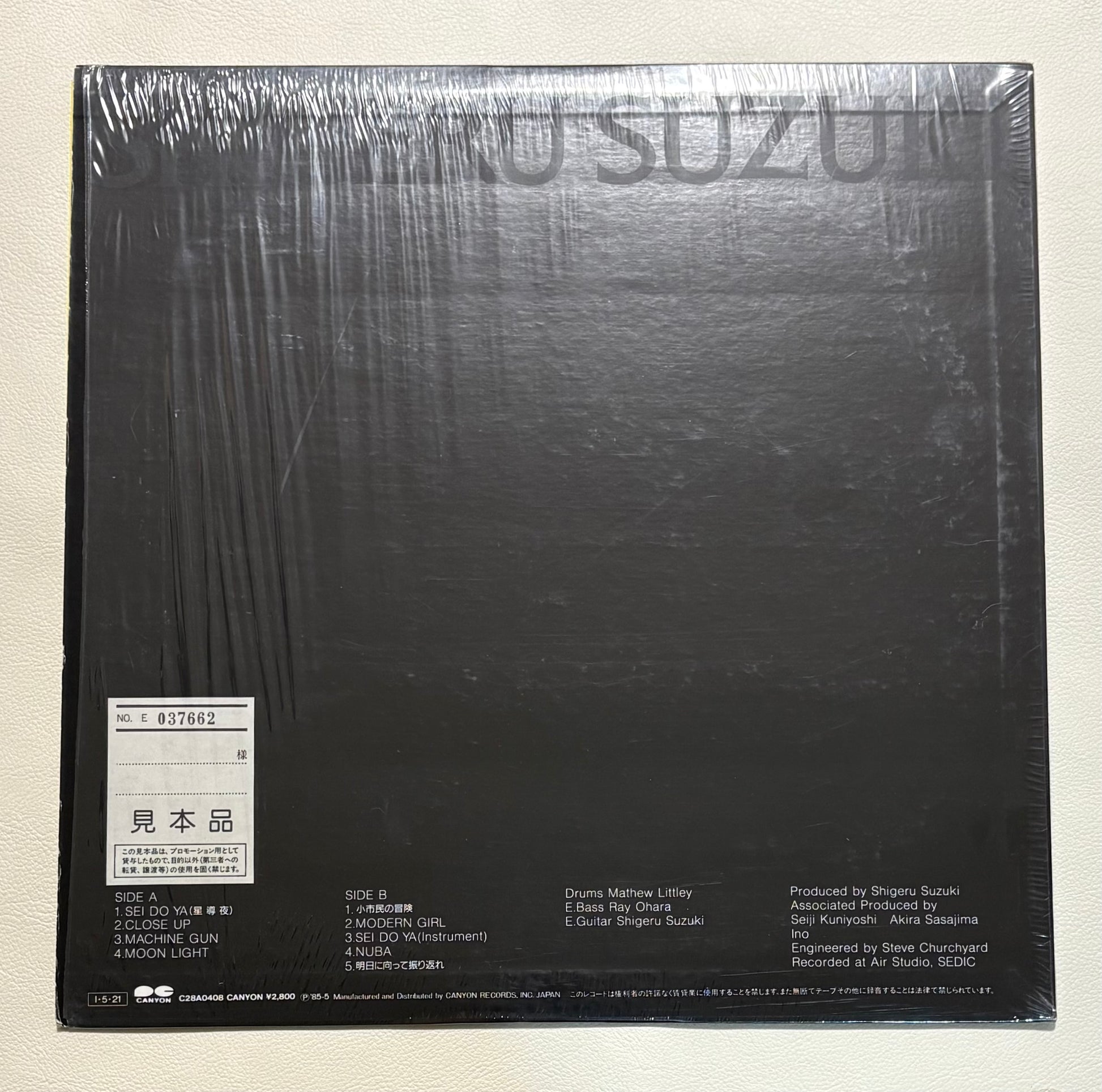 Released in 1985 on Canyon, Sei Do Ya finds Shigeru Suzuki updating his guitar work for the mid-80s with a London-recorded band featuring Rei Ohara on bass and Matthew Litley on drums, plus keyboard work from Jun Sato, Makoto Yano and Tony Hymas. The title track is a slick, urban New Wave/AOR tune, “Moon Light” drifts into dreamy, synth-washed midtempo territory, while “Modern Girl” brings a POLICE-like electric reggae feel and “Nuba” leans into synth-driven fusion. Tight programmed/played drums, chorus guitar and clean intros give DJs and beatmakers plenty of sample-friendly sections – from crisp snare patterns and basslines to atmospheric pads and guitar textures.
