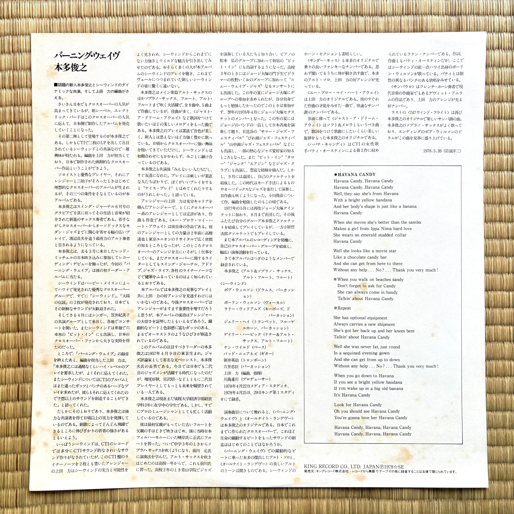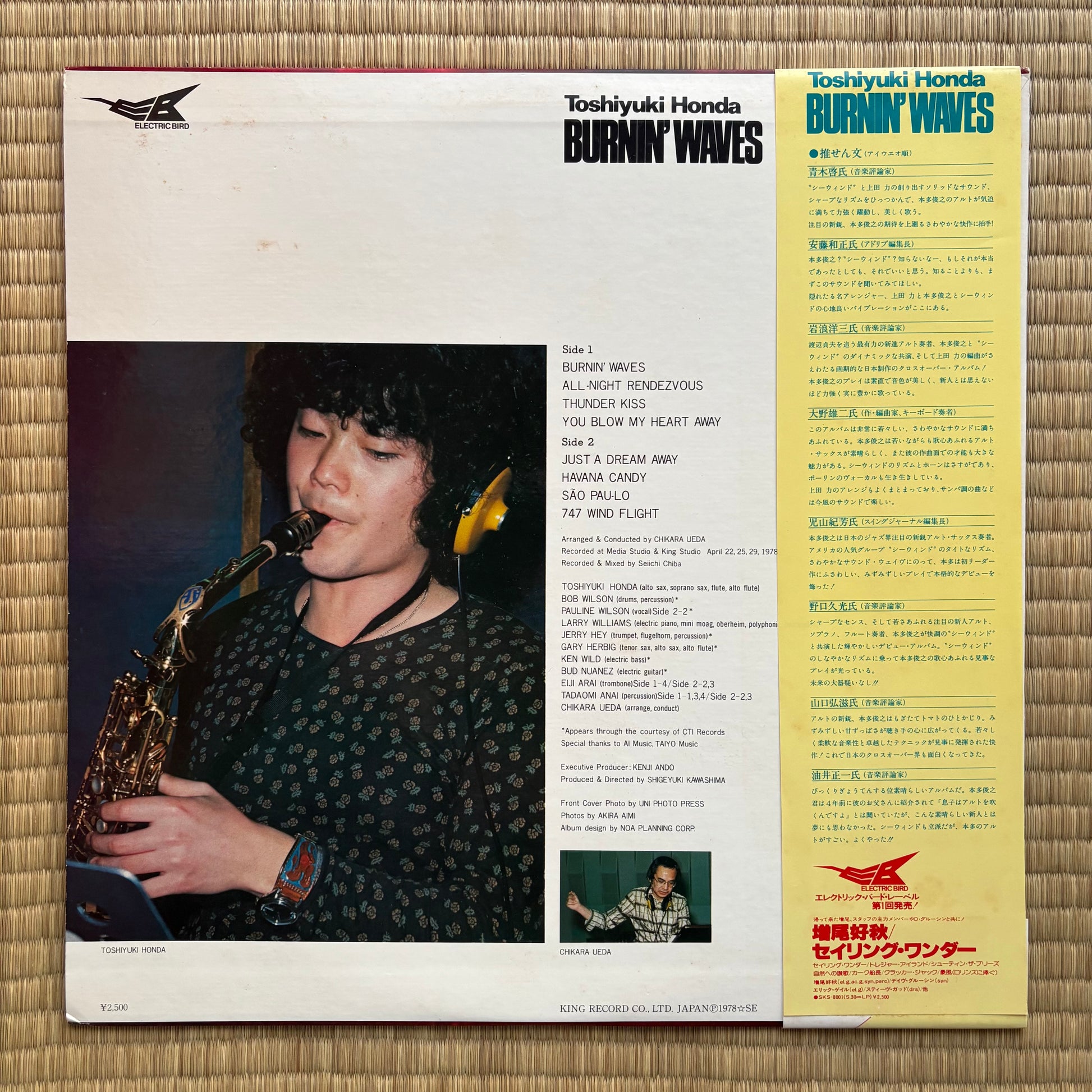 Toshiyuki Honda’s debut Burnin’ Waves (1978, Electric Bird) is a blazing Japanese jazz-funk session with the core of Seawind — Larry Williams, Jerry Hey, Bud Nuanez, Ken Wild, Bob Wilson and vocalist Pauline Wilson — all arranged and conducted by Chikara Ueda. The title track and Thunder Kiss hit hard with tight horns and thick basslines that are perfect for DJs and beatmakers, while Just A Dream Away slides into warm mid-tempo fusion and Havana Candy delivers a Brazilian-flavored crossover tune led by Pauline Wilson’s soulful voice. A killer blend of deep Japanese fusion and West Coast studio power that works both as a front-to-back listen and as a source of club-ready cuts.