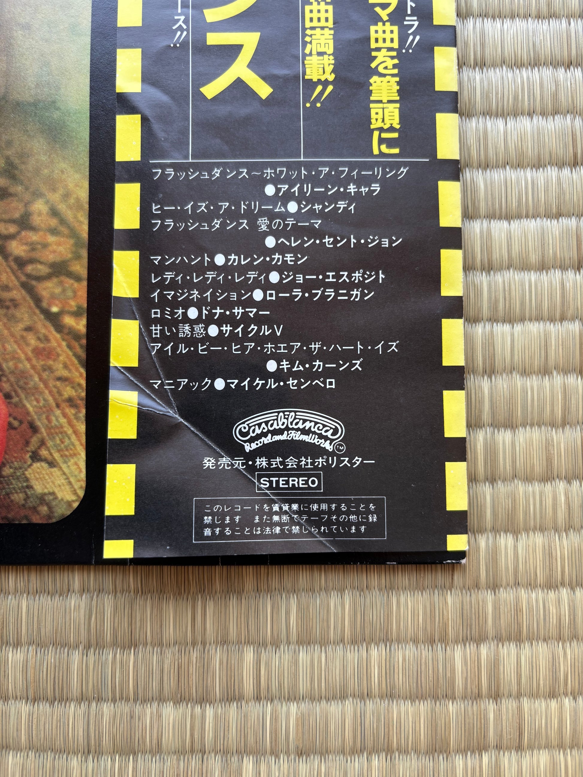 Japanese pressing with original obi. Includes Irene Cara’s Oscar-winning theme and Michael Sembello’s “Maniac.” Essential ’80s soundtrack collectible.