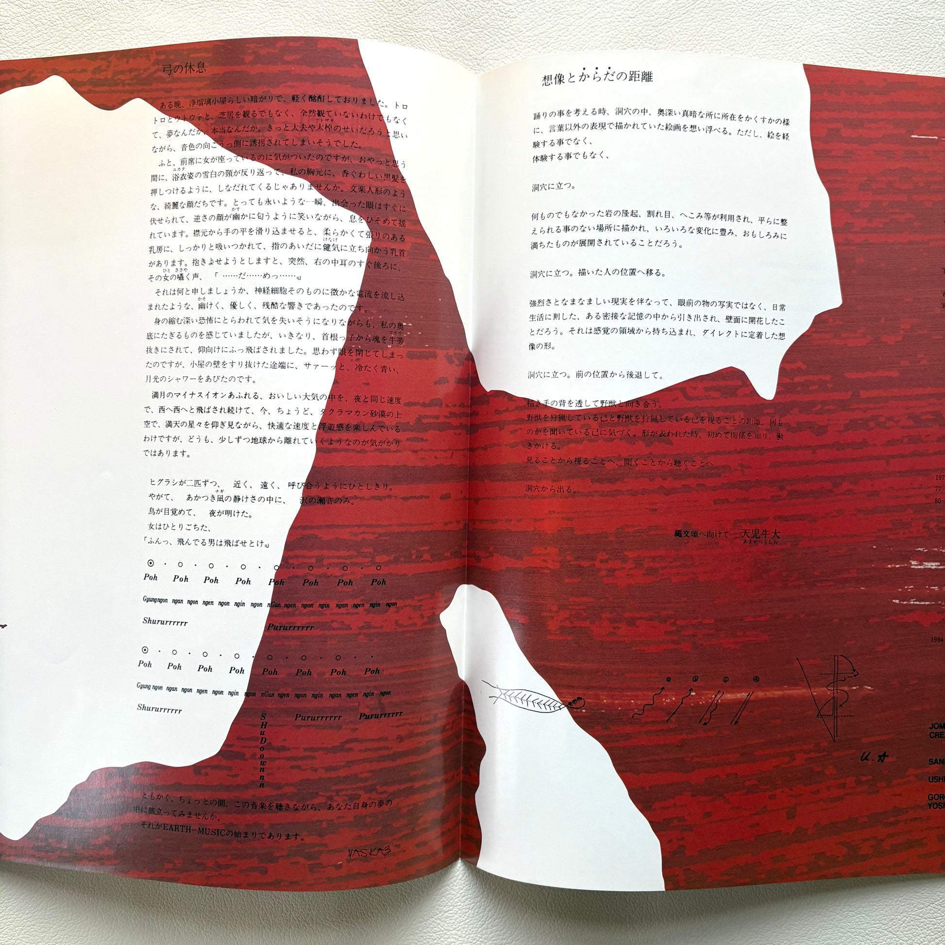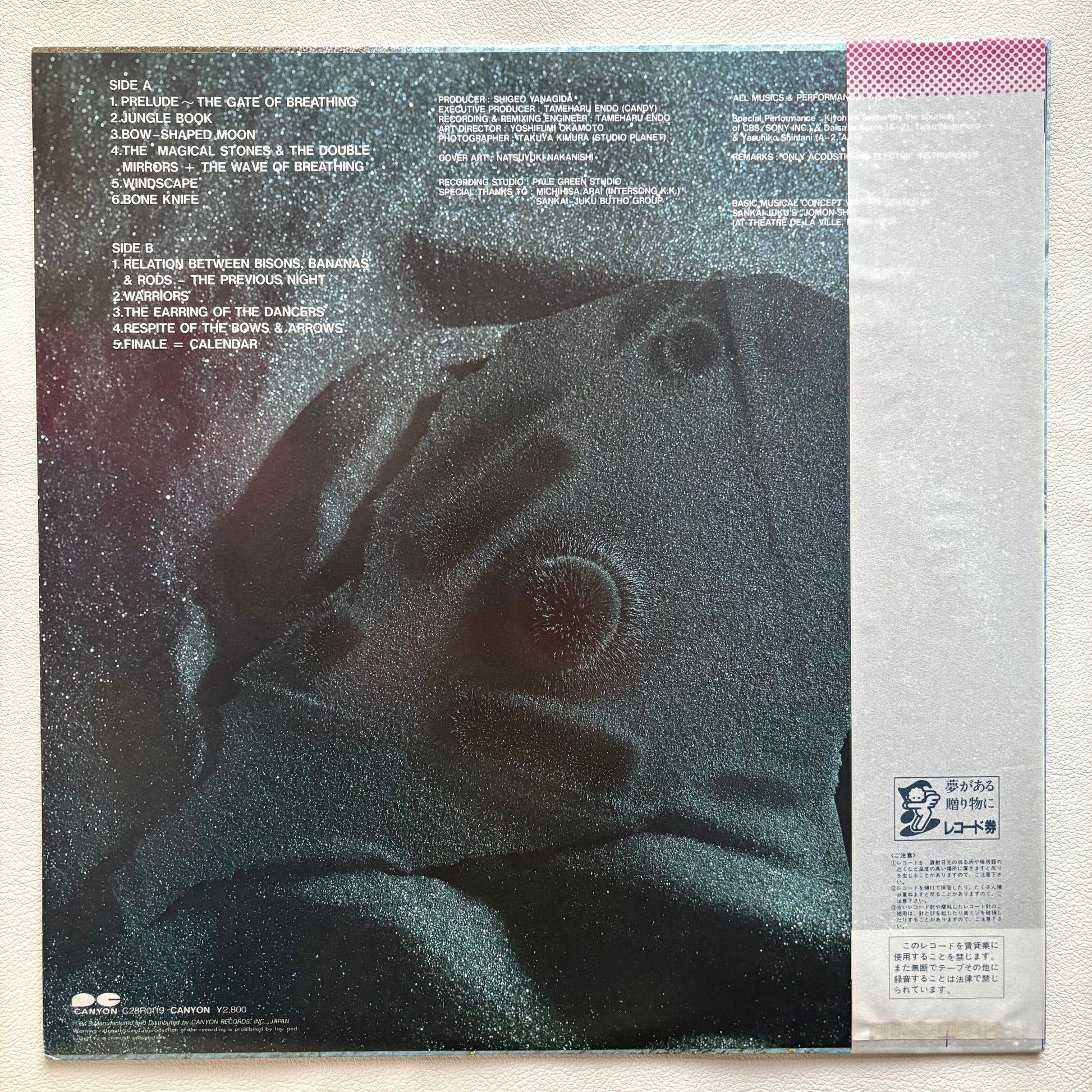 Starting from sessions with Akira Sakata and Kaoru Abe and expanding into collaborations with dance groups like Sankai Juku, Yas-Kaz brings movement into sound. Jomonsho captures percussion and flute as “wild life” — vivid, physical, and unlike anything else in Japanese new/ambient-percussion.