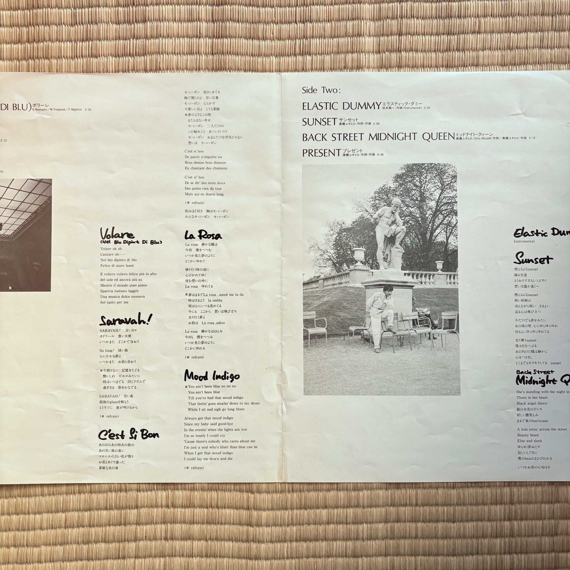 Yukihiro Takahashi’s 1978 solo debut “Saravah!” is basically the missing prequel to YMO – a Paris-styled lounge pop record played by the technopop dream team. Haruomi Hosono holds down the elastic bass, Ryuichi Sakamoto paints everything with Rhodes, analog synths and strings, and Shigeru Suzuki’s guitar slips in next to cameos from Tatsuro Yamashita, Minako Yoshida and Masayoshi Takanaka.French chanson covers melt into “Elastic Dummy,” “Sunset” and “Back Street Midnight Queen,” where tight machine-like drums, shimmering keys and open drum passages make perfect material for sample-hunters and late-night selectors who want to glide from city pop into cosmic disco without breaking the mood. Honestly.